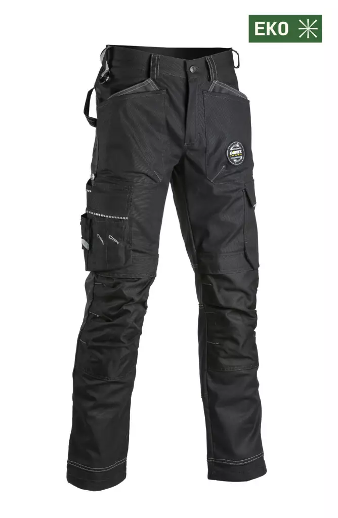 Tuotekuvaus 55% PES 43%CO 3% EOL(XLA), 285 g/m², 40% CO 30%PES 30% EME(T400), 205 g/m², Cordura 100% polyamidi, 240 g/m², joustava, erittäin hengittävä ja kestävä materiaali Musta, harmaa 44-64 Cordura-vahvikkeet polvissa ja taka lahkeensuussa. Etu- ja paikkataskut, reisitasku,esiinotettava vaaka/pysty henkilökorttitasku, puhelin/tarvike- ja kynätasku. Takataskut. 2-in-1 polvisuojataskut Corduraa. Vasaralenkki, puukkonappi ja lenkki. D-lenkki. Heijastimet. 2-in1 pituus, valmiiksi huoliteltu 5 cm pidennysvara ja 5cm lyhennysvara.