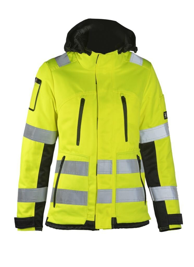 Dimexin hyvännäköinen ja toimiva työtakki naisille. Istuvuutta voi muokata vyötärön ja helman joustonyörisäädöllä. Kangas on vettä ja likaa hylkivää ja sisältä löytyy lämmin Thinsulate-tikkivuori. Työtakin monikäyttöisyyttä lisää vetoketjukiinnityksellä oleva irrotettava huppu.