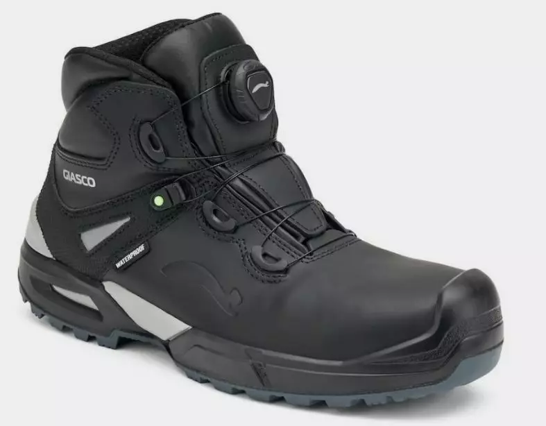 Vedenpitävä, varrellinen turvajalkine Click Open-rulla kiinnitysmekanismilla. Materiaalina IDROTECH® käsitelty