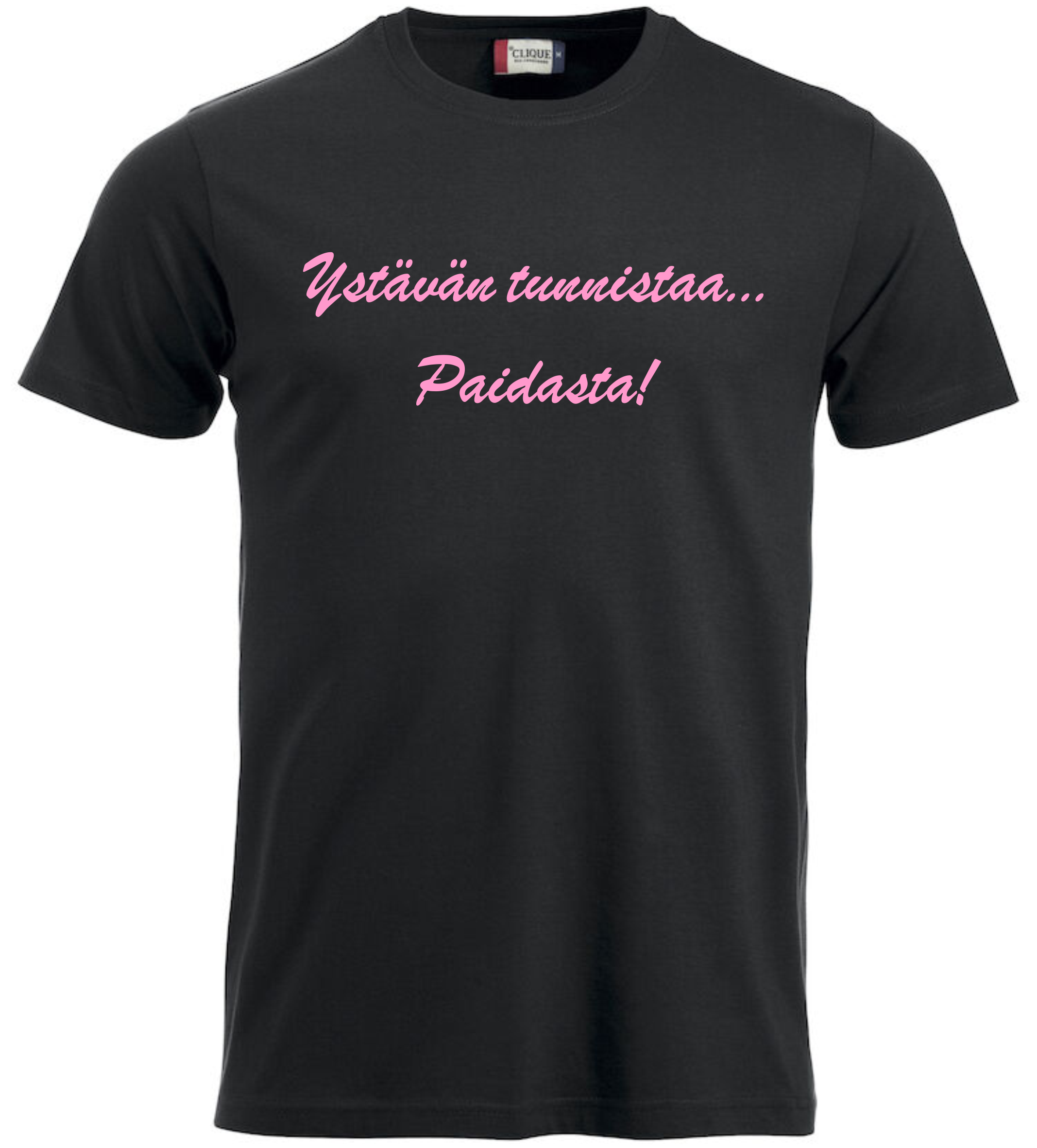 T- paita omalla tekstillä! Tilaus: Lisää tuote ostoskoriin valitsemallasi koolla ja määrällä. Ostoskorissa kirjoita "vapaamuotoinen viesti"- kohtaan haluamasi teksti, fontin väri ja malli.... Lue lisää